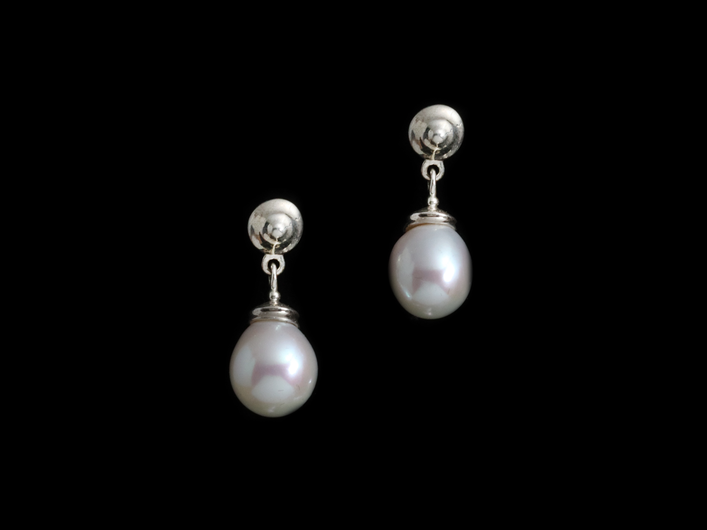 The Earring Delights feature stunning 12 mm pearls suspended from our "Shine" silver earring posts and secured by silicone backings.